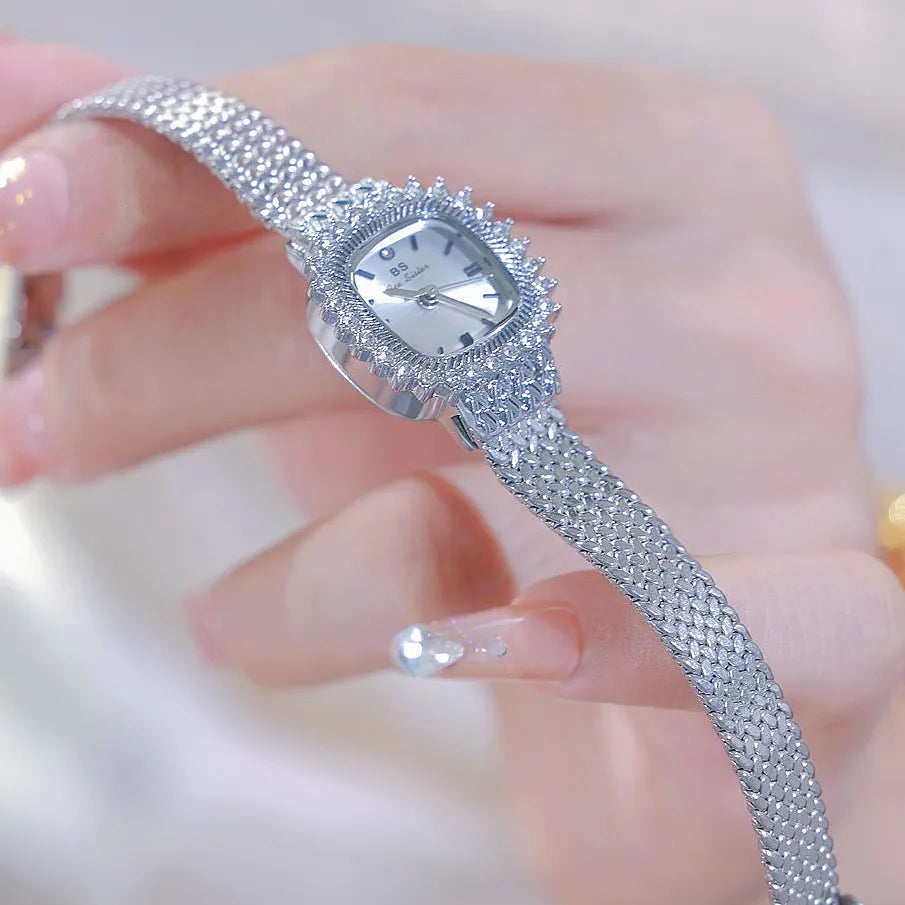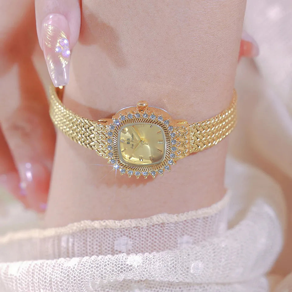 New Women's Luxury Crystal Bracelet Watches Fashion Retro Gold Silver Ladies Quartz Wristwatch Mesh Alloy Female Watch Small