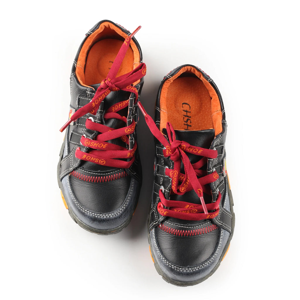 SHOELANDER Genuine Leather Women's Flat Sneaker Shoes for Outdoor